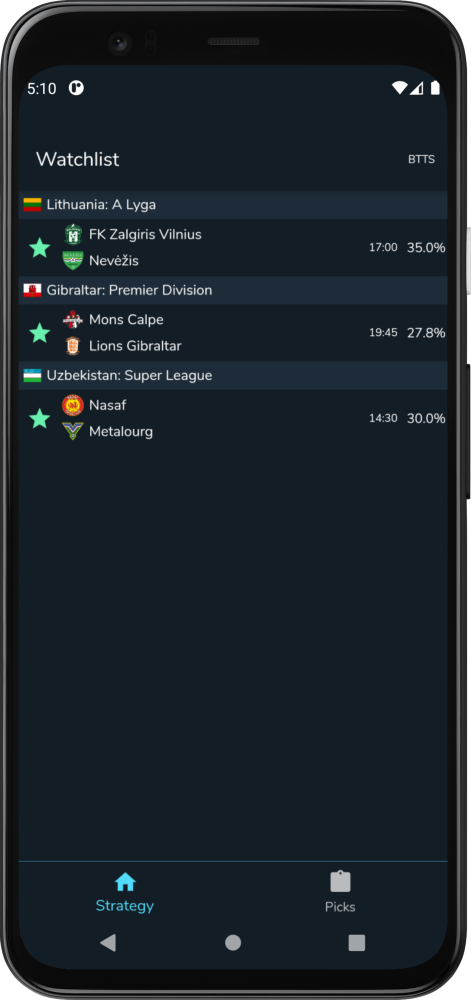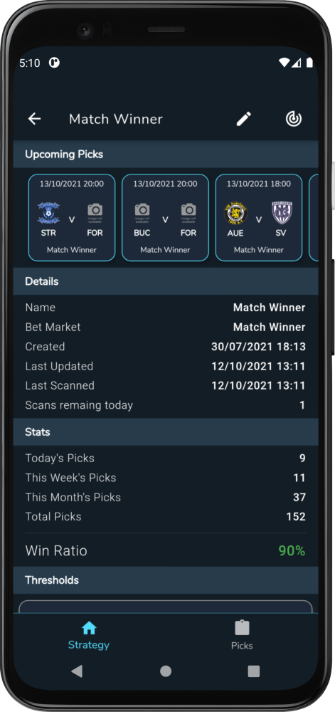 We scan every game from over 1000 global football leagues each day then apply your unique strategies to highlight the games that fit your system! We display detailed match analysis for every game as well in depth form guide.
